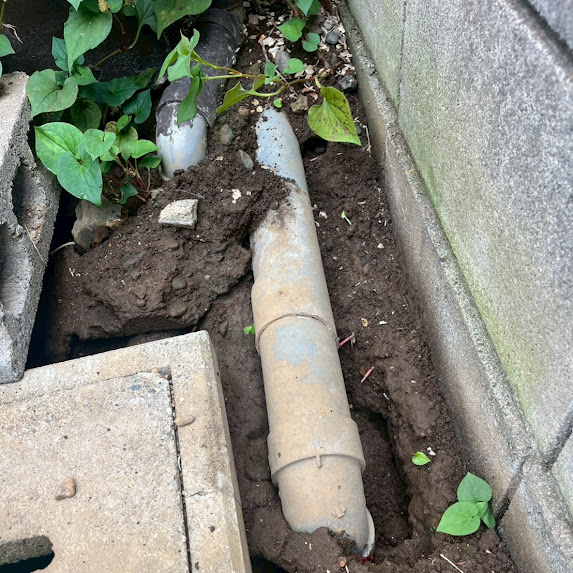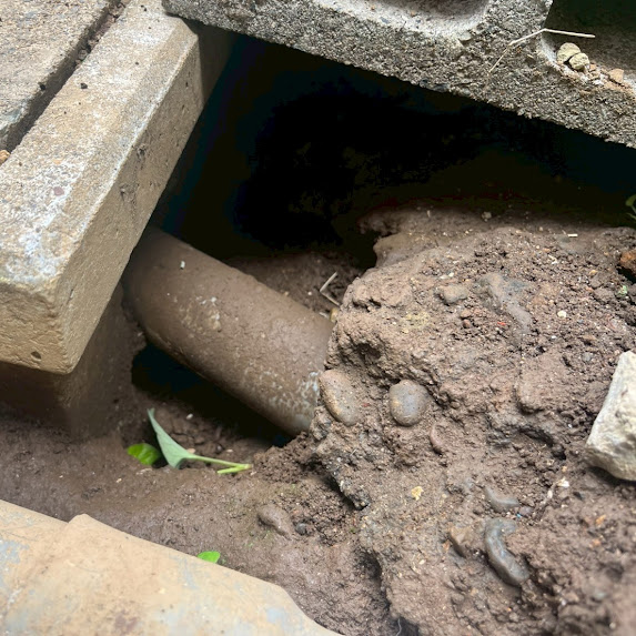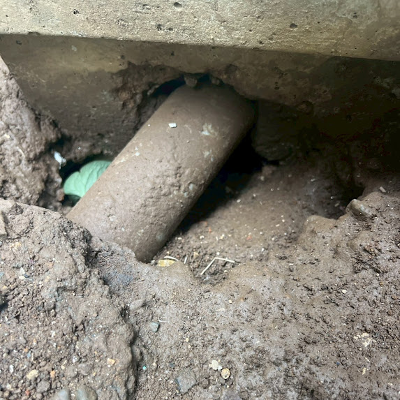 建物外周やお庭などにある、排水管、排水桝の周辺の土が無くなってしまい、穴が開いてしまっています。
