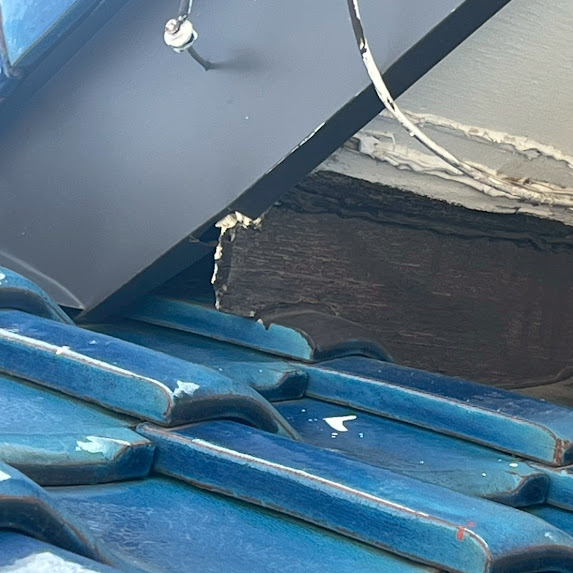 棟違いの言われる場所で「軒天井」と「瓦屋根」が組み合わさる部分です。
