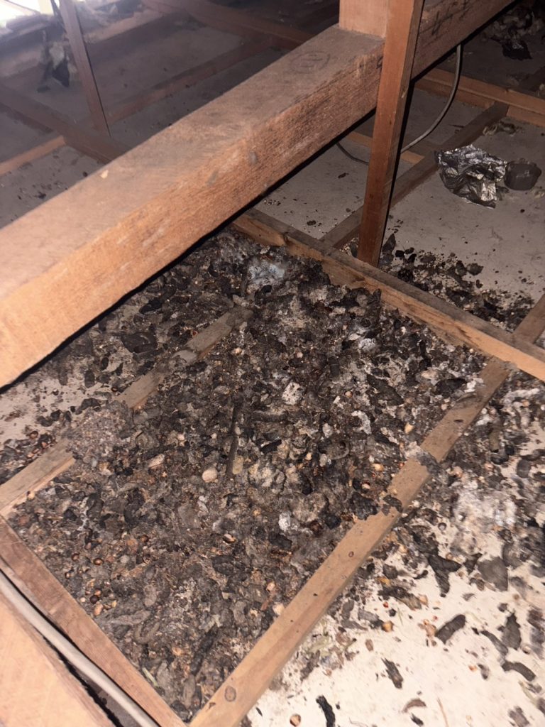 屋根裏を覗くと、やはり大量の糞尿が…