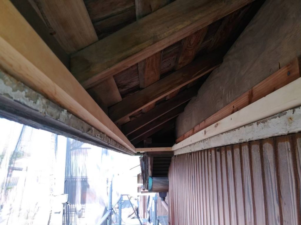 今回のお客様は屋根の軒天がボロボロになっており、ハクビシンに数か所壊されてしまっている状況でした。