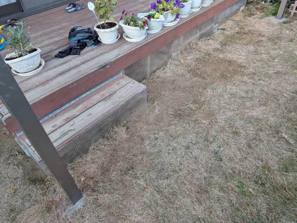 今回のお客様はウッドデッキの下からネズミが入っていくのを目撃しており、そこを重点的に点検、封鎖をおこないました。