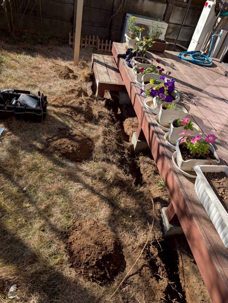 ネズミは穴を掘って侵入するケースがあるため、地面に約10㎝ほど埋めて封鎖しています。