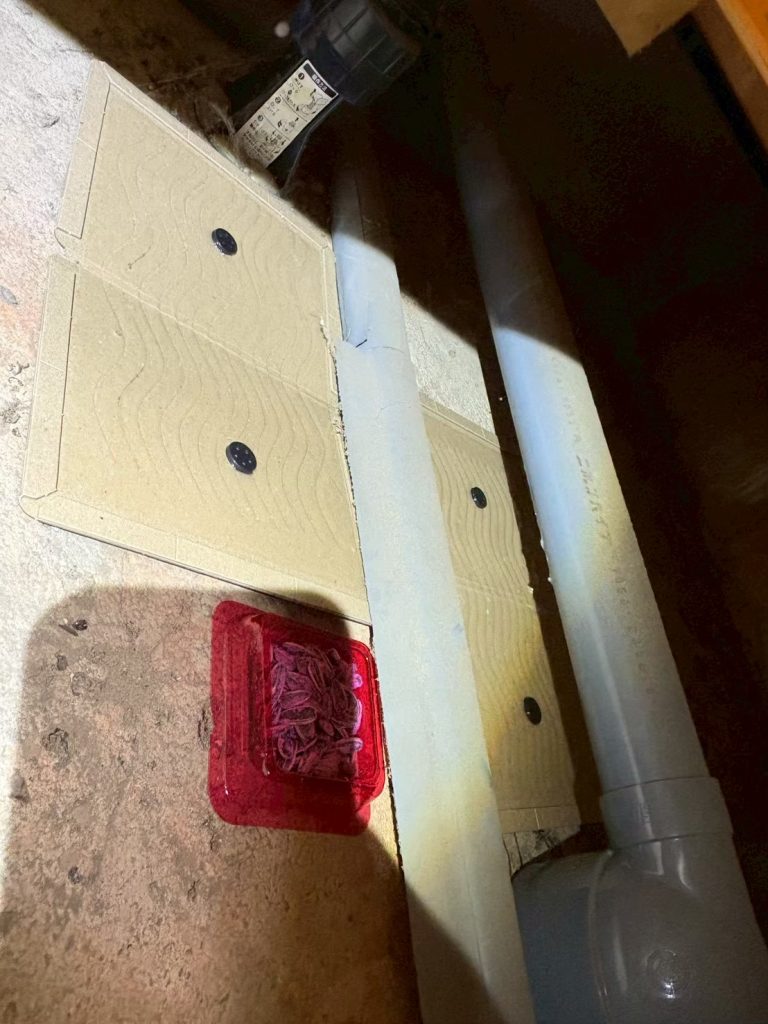その後、薬剤の散布、逃げ残り予防の為粘着トラップ、殺鼠剤を設置し終了となりました。