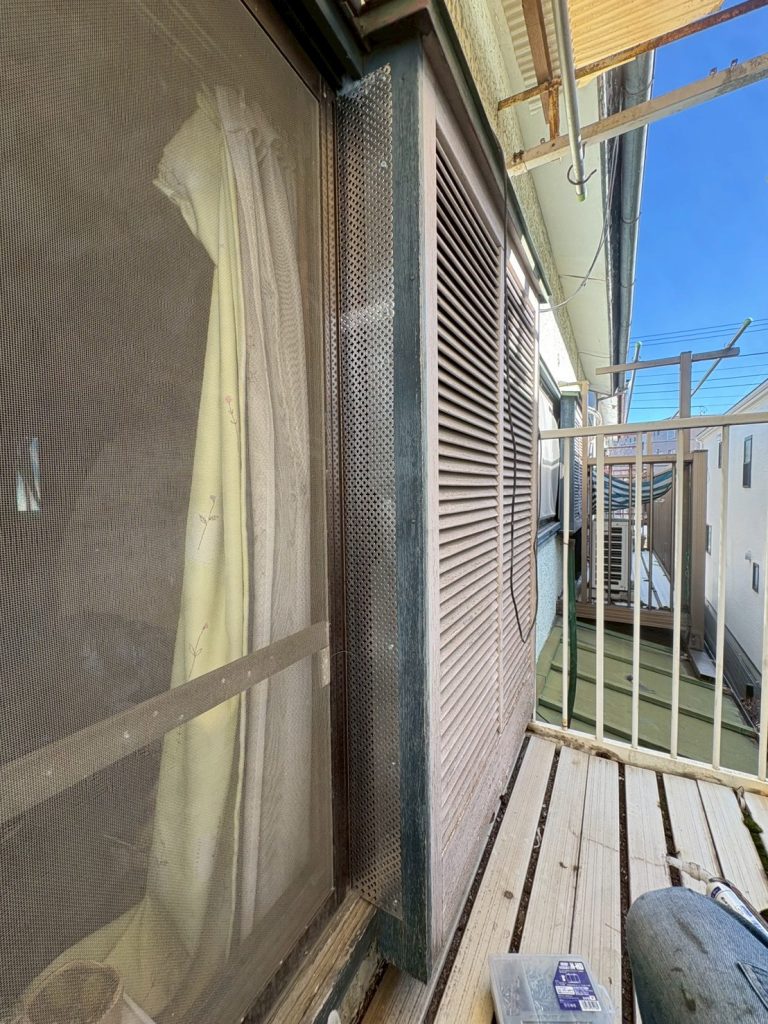 お客様のほうで、もう戸袋は使用しないとのことでしたので、パンチングメタルを使用しての完全封鎖を実施しました。