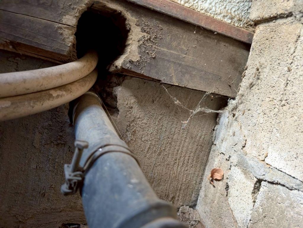 今回のお客様は基礎周りに配管を通している穴が大きくあいており、その後の処理が不十分であった為、ネズミに侵入されてしまっていました。